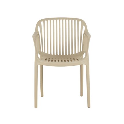 NOVA πολυθρόνα σε χρώμα cappuccino κατασκευασμένη από πολυπροπυλένιο. Με ιδιαίτερο design στην πλάτη και το κάθισμα.Διαθέτει μπράτσα για μεγαλύτερη άνεση