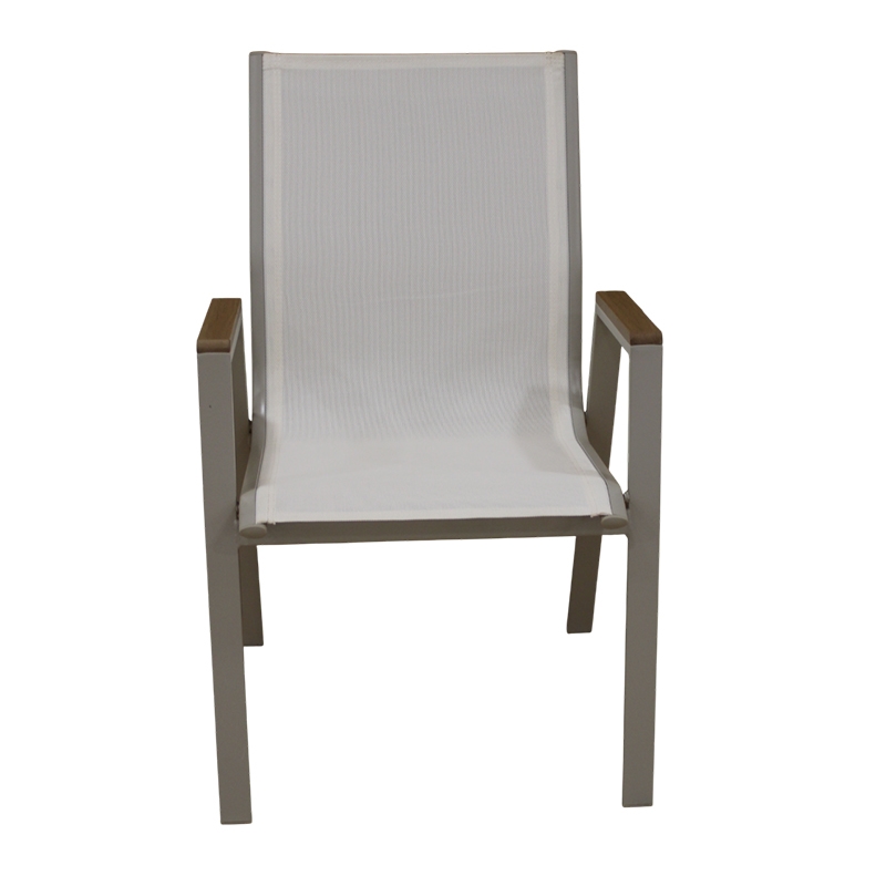 Selby πολυθρόνα με μεταλλικό σκελετό βαφής σε χρώμα cappuccino.Η πλάτη και το κάθισμα είναι από textilene χρώματος white. Τα ξύλινα πλαίσια που διαθέτει στα μπράτσα προσθέτουν στο κάθισμα μια ιδιαίτερη κομψότητα. Ένα άνετο κάθισμα, όπου θα απολαμβάνετε την ξεκούραση σας στον κήπο ή την βεράντα σας.