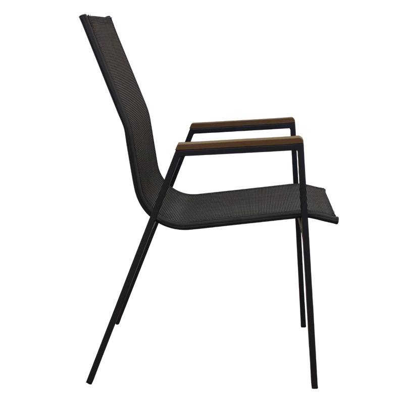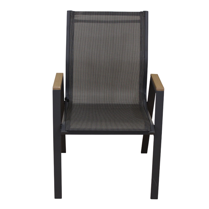 Selby πολυθρόνα με μεταλλικό σκελετό βαφής σε χρώμα grey.Η πλάτη και το κάθισμα είναι από textilene χρώματος grey. Τα ξύλινα πλαίσια που διαθέτει στα μπράτσα προσθέτουν στο κάθισμα μια ιδιαίτερη κομψότητα. Ένα άνετο κάθισμα, όπου θα απολαμβάνετε την ξεκούραση σας στον κήπο ή την βεράντα σας.