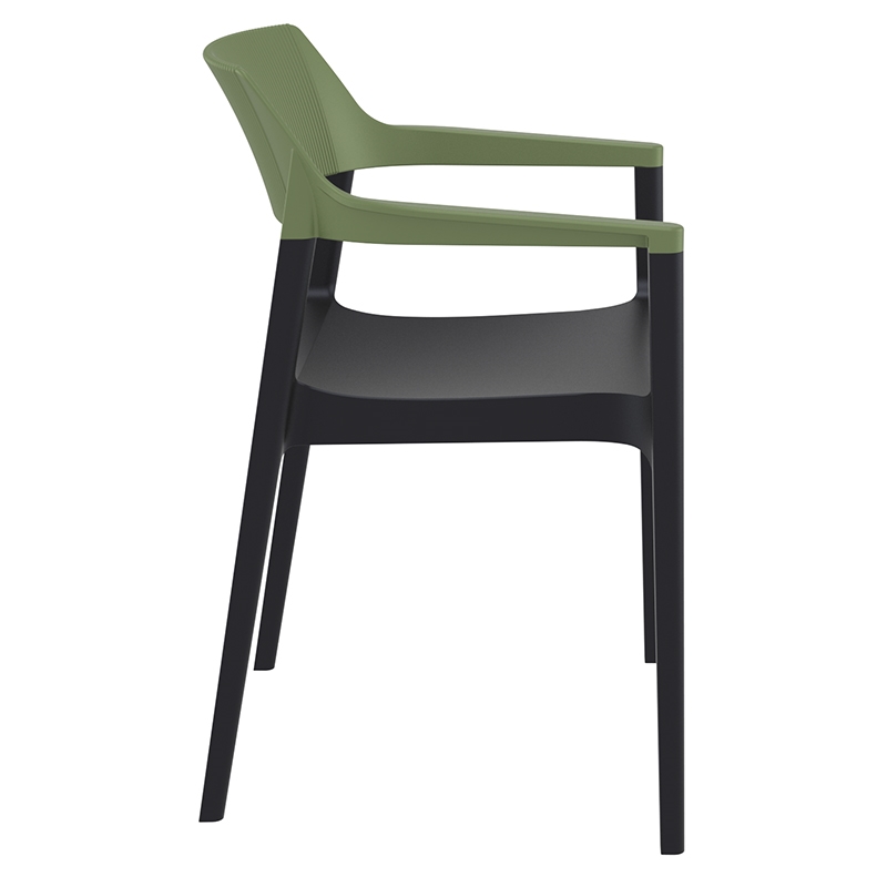 Tulum πολυθρόνα του οίκου Siesta σε χρώμα black/olive green με σχεδιασμό υψηλής αισθητικής στην πλάτη. Κατασκευασμένη από πολυπροπυλένιο με 20% fiber glass για απόλυτη αντοχή στο χρόνο. Κατάλληλη για εσωτερική και εξωτερική χρήση, είναι στοιβαζόμενη για εύκολη αποθήκευση, ιδανική επιλογή για επαγγελματικούς χώρους. Πιστοποιημένο προϊόν από τον Ιταλικό οίκο CATAS.