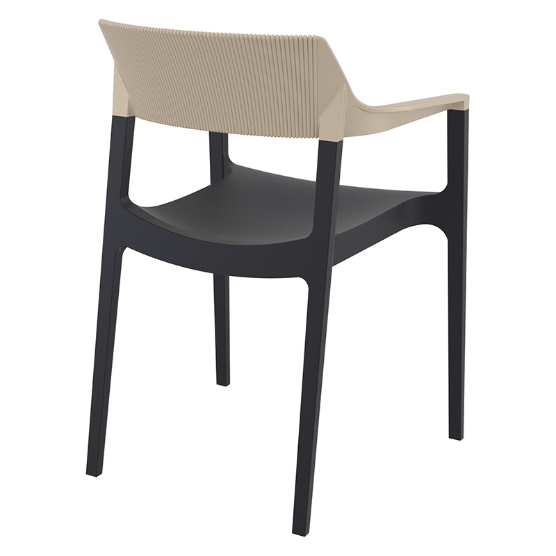 Tulum πολυθρόνα του οίκου Siesta σε χρώμα black/taupe με σχεδιασμό υψηλής αισθητικής στην πλάτη. Κατασκευασμένη από πολυπροπυλένιο με 20% fiber glass για απόλυτη αντοχή στο χρόνο. Κατάλληλη για εσωτερική και εξωτερική χρήση, είναι στοιβαζόμενη για εύκολη αποθήκευση, ιδανική επιλογή για επαγγελματικούς χώρους. Πιστοποιημένο προϊόν από τον Ιταλικό οίκο CATAS.