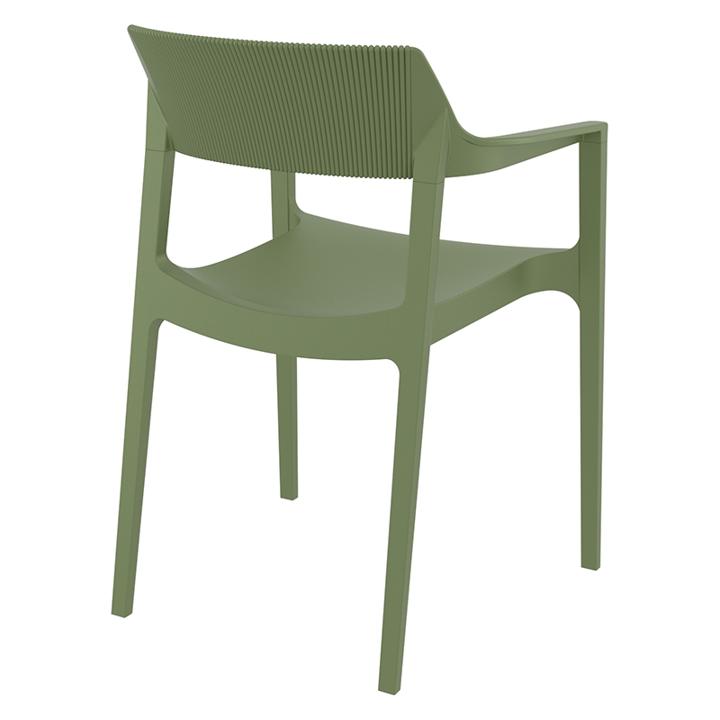 Tulum πολυθρόνα του οίκου Siesta σε χρώμα olive green με σχεδιασμό υψηλής αισθητικής στην πλάτη. Κατασκευασμένη από πολυπροπυλένιο με 20% fiber glass για απόλυτη αντοχή στο χρόνο. Κατάλληλη για εσωτερική και εξωτερική χρήση, είναι στοιβαζόμενη για εύκολη αποθήκευση, ιδανική επιλογή για επαγγελματικούς χώρους. Πιστοποιημένο προϊόν από τον Ιταλικό οίκο CATAS.